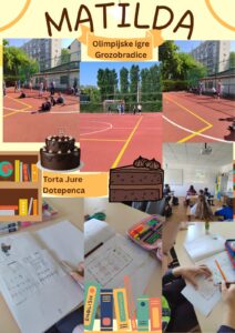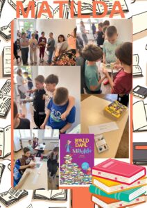 eTwininng projekt LektiGra odveo nas je u svibnju u Englesku kako bismo upoznali Matildu, glavnu junakinju istoimene knjige Roalda Dahla. Učiteljica Nikolina i knjižničarka Ivana pripremile su detaljan plan puta s puno zanimljivosti. Lektirni dan započeo je teškom matematikom. Jura Dotepenec je pojeo previše torte pa smo, kako bismo mu pomogli, malo učili o razlomcima. Svi smo se složili da je najlakše pojesti cijelu tortu kao Jura, nego mučiti se sa šnitama. Dan smo nastavili malim olimpijskim igrama grozne Agathe Grozobrad gdje smo se natjecali u trčanju i bacanju lopte u dalj. Ruža i Filip bili su najbolji u bacanju lopte, a David Christer je bio najbrži i sigurno bi pobjegao zloj Agathi da ju sretne. Četvrti sat započeli smo desertom i prisjećanjem što su i kako jeli u obitelji Papričić. Po uzoru na knjigu spremili smo u limenoj posudi tiramisu i stavili hladiti. Za to vrijeme učiteljica Nikolina predstavila je igru Dobble koja se sastojala u poznatim pravilima te igre uz dodatak objašnjavanja slika koje su bile u paru. Kako je Matilda jako puno čitala i zaista uživala u ćitanju učenici su kao jedan dio lektirnog zadatka trebali donijeti svoju najdražu knjigu kako bi u ovom dijelu sata smisli predstavljanje svoje najdraže knjige u obliku kratkog videa. Dok su učenici odlazili na snimanje videa u knjižnicu u razredu su izrađivali vremensku crtu na koju su trebali upisati i nacrtati događaje iz Matildinog života po vremenskom redoslijedu.